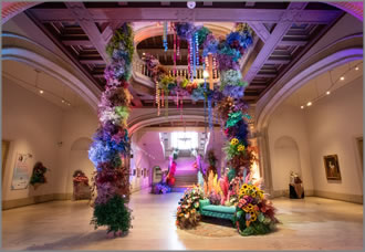 才能豊かなフラワーデザイナーが、ミュージアム所蔵のコレクション約100点からインスピレーションを得て、香り高いアレンジメントのテクニックを発揮しながら、ギャラリーを万華鏡のような色彩で埋め尽くす。
