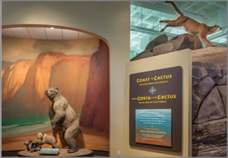 サンディエゴ自然史博物館 (The Nat) の常設展「Coast to Cactus in Southern California」でその全容を見ることができる。