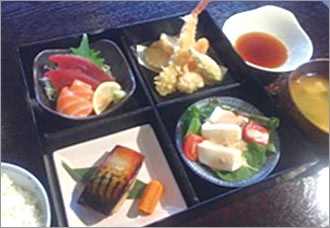 ランチタイム(月-金 11am-2pm)のお薦めは、弁当ボックス、テリヤキ天ぷら、ちらし寿司。