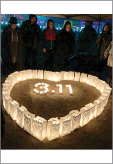 キャンドルを灯して、地震発生と同時刻(日本時間3月11日 2:46pm)に祈ります。