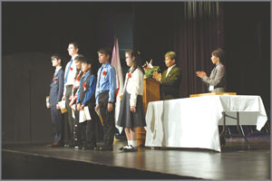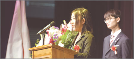 次に来賓が紹介され、記念品贈呈、皆勤賞授与と進み、在校生の心のこもった送辞、卒業生の立派な答辞のスピーチに、出席者一同深い感銘を受けました。