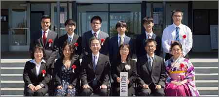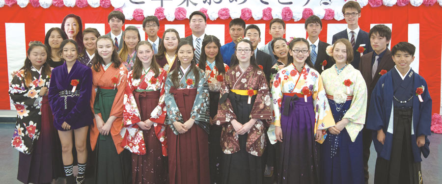 厳かな雰囲気の中、日米国歌が斉唱され、小学部6年1組担任の加藤ゆき子先生、6年2組担任の小出紀子先生、中学部3年1組担任のソリス静代先生、3年2組担任のバスカーク美絵先生、高等部3年担任の小林久代先生がそれぞれ卒業生の名前を思いを込めて読み上げ、卒業生は大きな返事でそれに答えました。