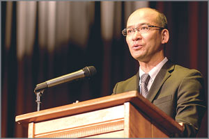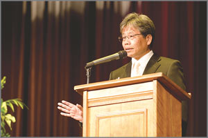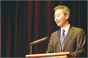 中村和則校長先生の式辞に続き、荒川祐二理事長があいさつ。