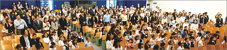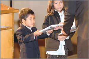 去る4月6日(土)、「みなと学園」 の 「第41回小学部入学式」 および 「第5回幼稚部入園式」がマディソン高校(借用校)のパフォーミング・アーツ・センターで行われました。