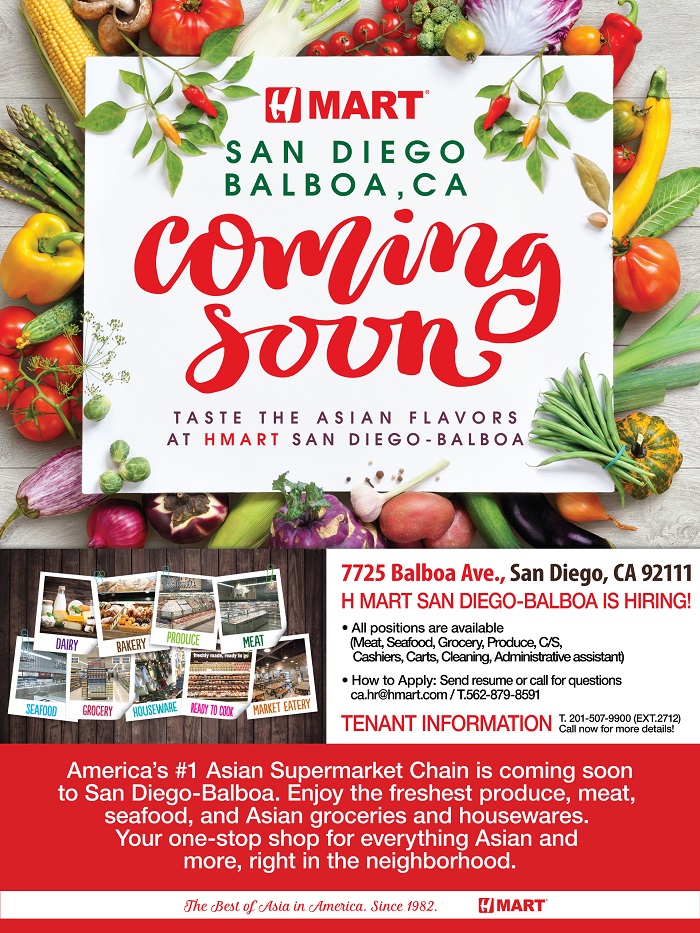 全米14州に97店舗を展開するアジア系スーパーマーケットチェーンHマートが、サンディエゴで2店舗目となるストアをバルボアに近日オープンします。