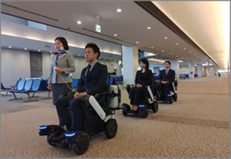 空港でパーソナルモビリティ(自動追従電動車椅子)の実証実験を実施