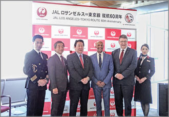 日本航空 (JAL) は、5月29日、ロサンゼルス-東京線の就航60 周年を祝うセレモニー を、ロサンゼルス国際空港のトム・ブラッドレー国際線ターミナルで実施した。