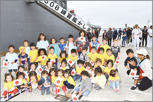 | つみき幼稚園の園児たちや関係者が艦艇の入港を歓迎 xxxx |