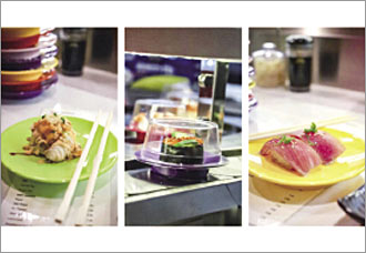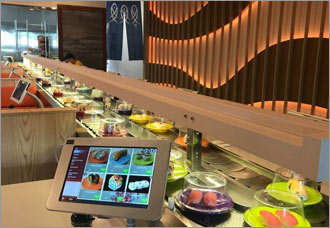 注文品は、回転寿司レーンとは別の高速レーンで、お客さまの目の前に直接運ばれてきます。