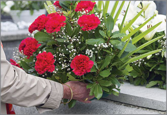 悲劇が起きた9月25日午前9時2分を目がけて、犠牲者を追悼する人々がここに集まり、黙とうを捧げた後、それぞれが献花した。