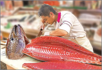 約100ポンドの本マグロを解体し、その場で新鮮なお鮨や刺身をお楽しみいただけます。