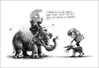 「トランプ氏の疑惑を問題視しつつ弾劾や証人喚問の賛成に踏み切れなかった共和党の一部穏健派議員は、選挙区でのトランプ氏の報復を恐れた。通常、現職大統領は議員選への露骨な介入を控えるが、2018年の中間選挙でトランプ氏は気に入らない共和党候補に予備選で容赦なく “刺客” を送り込む姿勢を鮮明にした。今回はその威嚇が相当効いた」