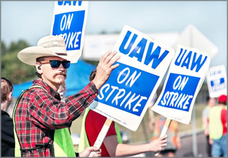 全米自動車労働組合 (UAW) は9月下旬、賃上げなど待遇改善をめぐる労使交渉に進展がないとして、ストライキを拡大した (*写真)。