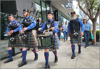 ハイランドゲーム "で最も人気のあるアトラクションの一つ。バグパイプの音、キルトの渦、荘厳なドラムメジャー、集団バンドのページェントリーなど、盛りだくさんだ。サンディエゴ大会では、競技だけでなく、「批評のための演奏」や、世界でも有数のパイパーによるマンツーマン指導の機会も設けられている。あらゆる年齢の競技者が、私たちのゲームにとって重要な役割を担っている。