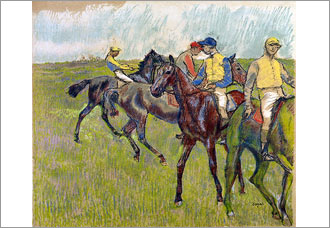 都会生活やバレエの練習情景、室内風景を主題としたものが多い中、競馬場などの野外風景を描写した希少作品が鑑賞できる。