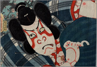*写真は歌川国貞の木版画「歌人藤原興風/初代中村梅玉の梅王丸」(1852年=嘉永5年)/ © The San Diego Museum of Art