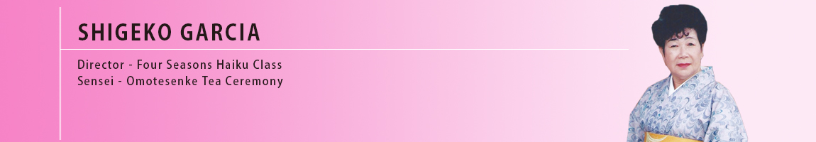 Based in San Diego, Shigeko Garcia has spent many years promoting and teaching haiku and tea ceremony throughout the United States.