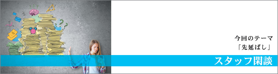 人間には苦手なことや嫌なことを後回ししようとする性質があるらしい。世界中で、この先延ばしの心理についての研究も進められているらしい。ある国の研究チームが発表した研究結果では、「先延ばしする行為」について「将来の残念な結果を予測できるにも関わらず、自らの行動を自発的に遅らせてしまうこと」と定義づけているとのこと。自分の先延ばしの心理を考えると、「残念な結果を予想できるにも関わらず」というのがまさにその通りで、苦笑してしまう。いつもやってしまう些細な先延ばしは、夕食後の皿洗い。夜の間に終わらせておけば、翌朝、キッチンはすっきり片付いていて朝から気分が良くなるのはわかっていても、食後、満腹で幸せにゆっくりくつろいでいると、明日でいいやと先延ばしの心理に満たされる。そして翌日。朝から、シンクに溜まった食器や調理器具の山 (=残念な結果) を前に呆然とするのである。あと、よくやってしまう先延ばしがこのスタッフ閑談。毎回、お題を頭に入れて、時間のある時に何を書こうかと思いを巡らし、今回こそはきちんと提出しようと思うのだが、どういうわけか、いつの間にか締切日がやってきて過ぎていく。いつも申し訳ありません〜! (RN) |