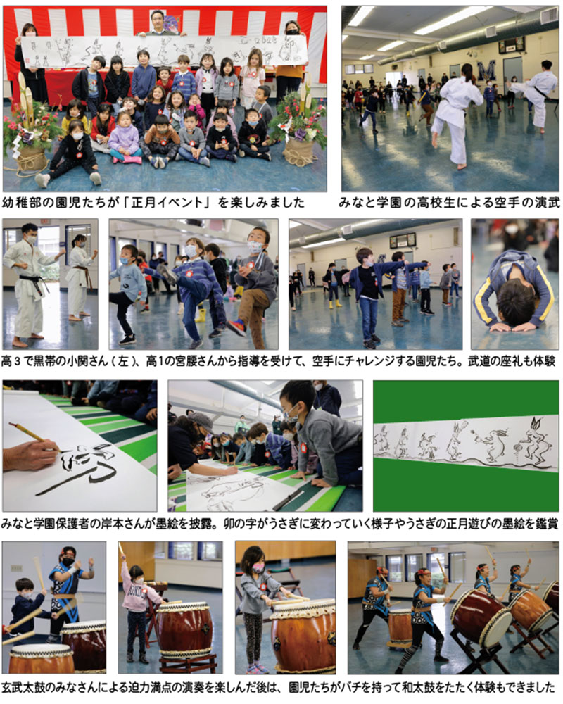 1月14 日 ( 土 )、サンディエゴ補習授業校みなと学園幼稚部の正月イベントがマディソン高校 ( 借用校 ) で開催されました。