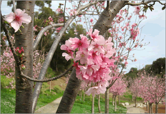 カリフォルニア州で品種改良されたピンククラウドの満開の桜をご堪能いただけます。