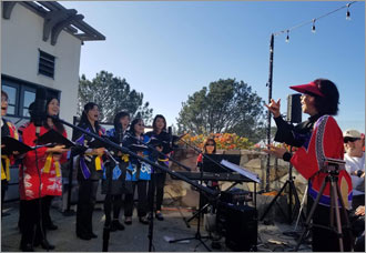 去る1月5日(日)、合唱団「コーラスかぐや」は、デルマーのレストラン「新橋」の餅つき大会で、新春にふさわしい歌を3回披露しました。