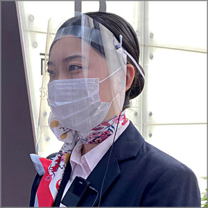 - 地上係員・客室乗務員は、マスクやフェイスガードなどを着用している。