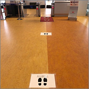- 空港での手続き・搭乗時における足跡マークの設置や、10人~20人ごとに分けての機内への案内を実施。