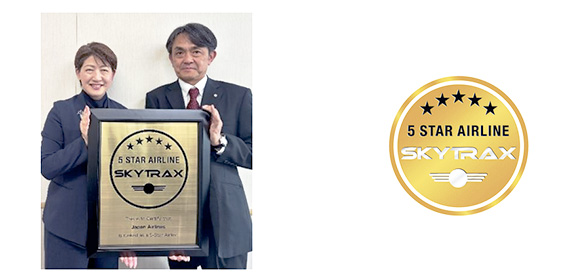 JALは、SKYTRAX社(*)により実施された「ワールド・エアライン・スター・レイティング」にて、航空業界をリードする高品質な商品・サービスをお客さまに提供し続けているとして、7年連続で最高評価「5スター」に認定された。