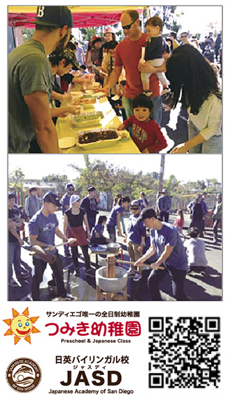 来たる1月13日 (土)、日英バイリンガル校「Japanese Academy of San Diego」の 幼稚部と小学部では、「新春の餅つき大会」を 次の通り開催いたします。