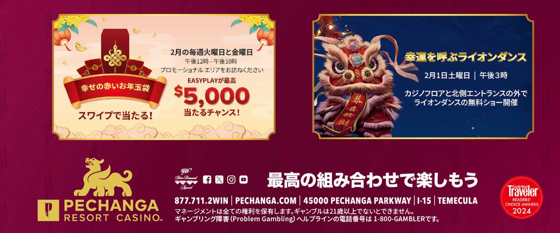 Pechanga Resort Casinoでは2月1日土曜日、「幸運のライオンダンス」の華麗なパフォーマンスで旧正月を盛り上げます。