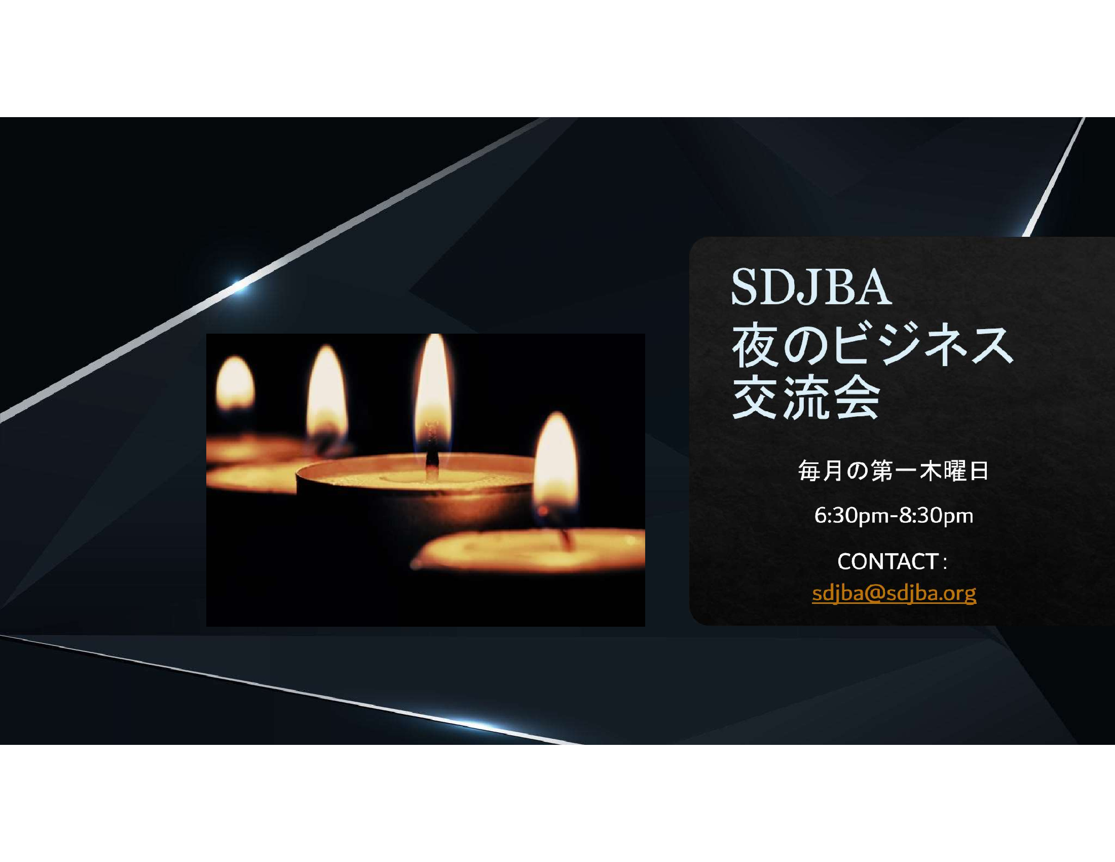 SDJBA主催 5月「夜のビジネス交流会」 のお知らせ 5月5日(木) 6:30pm〜