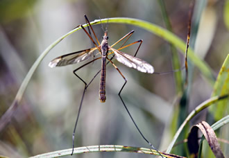 この虫は蚊ではなく、昆虫分類では「ハエ目」(双翅目=そうしもく) に属するクレインフライ (crane fly) という蠅 (ハエ) の一種。