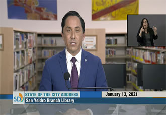 トッド・グロリア第37代サンディエゴ市長は1月13日、任期1年目の年頭施政方針演説をSD市営サンイシドロ図書館からオンラインで伝えた。