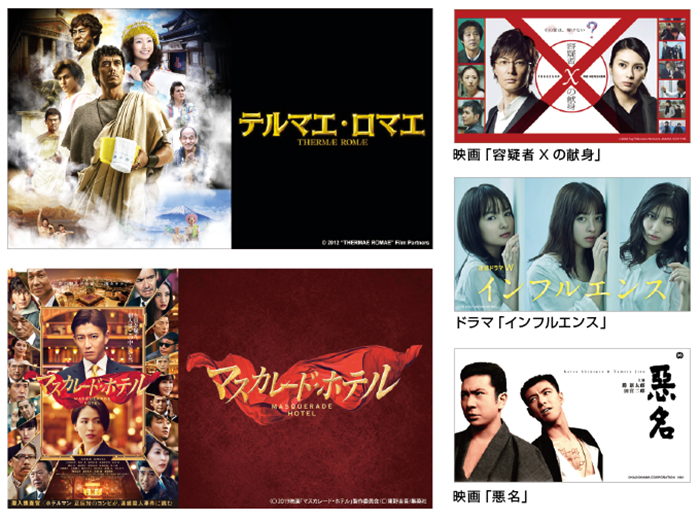 手塚治虫文化賞短編賞を受賞したヤマザキマリの異色コミックを阿部寛と上戸彩主演で実写映画化「テルマエ・ロマエ」と「テルマエ・ロマエⅡ」、木村拓哉と長澤まさみが共演、東野圭吾の大ベストセラー小説が待望の実写映画化「マスカレード・ホテル」、福山雅治が天才物理学者・湯川学を演じる人気シリーズの劇場版「容疑者Xの献身」と「真夏の方程式」など大ヒット作品が続々と登場します。