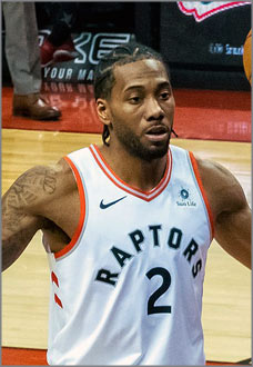 トロント・ラプターズのエース、カワイ・レナード (サンディエゴ州立大出身/*写真) は厳しい表情のまま2本のフリースローを沈めると、勝利を確信して両手を突き上げた。
